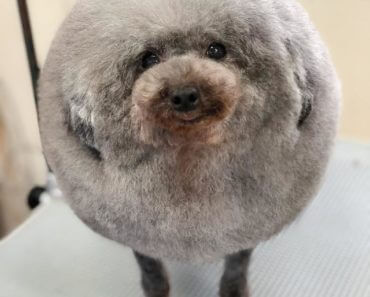 Грумеру привели очень пушистого пуделя, и он решил поэкспериментировать. Теперь пес похож на идеальный шар